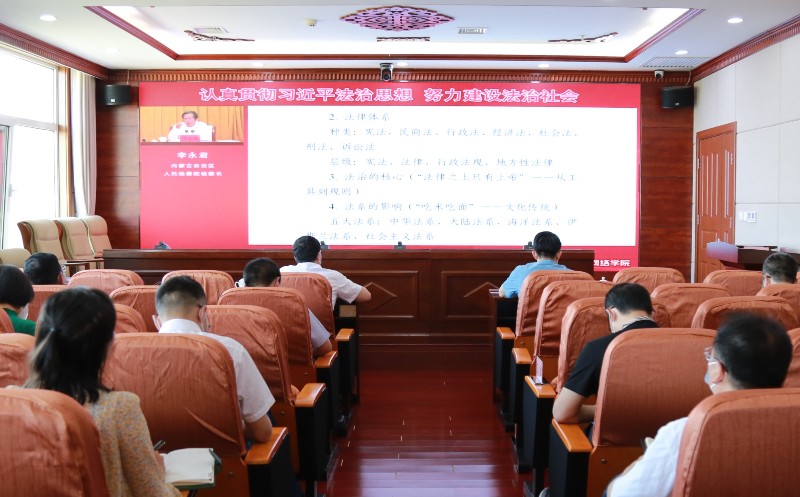 为扎实开展学习贯彻习近平新时代中国特色社会主义思想主题教育,深入学习贯彻习近平法治思想,6月5日,自治区党委编办组织全体干部职工集中收看了内蒙古自治区人民检察院检察长李永君讲授的,题为“认真贯彻习近平法治思想 努力建设法治社会”的辅导讲座。