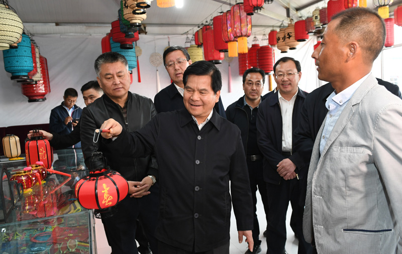 5月6日下午,自治区党委书记、人大常委会主任李纪恒来到锡林郭勒盟太仆寺旗内蒙古雪军灯笼有限公司,深入调研产业扶贫情况。该公司与当地贫困户签订长期协议,回购他们手工编结的灯笼,使180多人每人年均增收1.2万元,为建档立卡贫困户提供了稳定增收渠道。