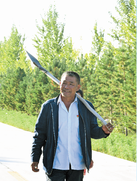 库布其炙热的夕阳烘烤着高毛虎饱经风沙的脸,也让他胸前的党徽熠熠生辉。又结束了一天的劳作,回望身后的那片绿色,高毛虎的心情无比舒畅: