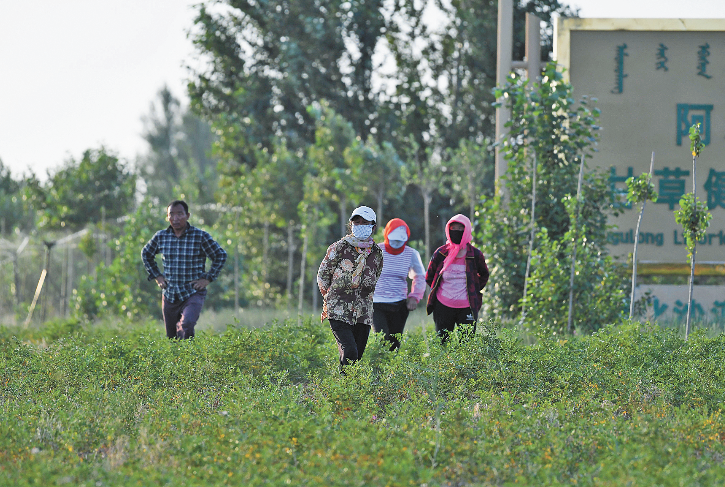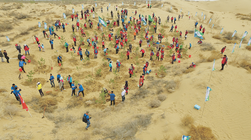 守望相助,心手相连,志愿者接踵而至延展恩格贝绿色画卷;