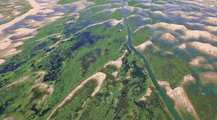 杭锦旗水生态把黄凌水引入沙漠低洼地,变水害为水利。现在的库布其沙漠水生态治理区,可谓水沙相连映天色,鱼鸟嬉戏万物春。