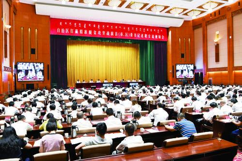 28日上午,自治区打赢精准脱贫攻坚战旗县(市、区)委书记述职交流视频会在呼和浩特召开。国务院扶贫开发领导小组副组长、国务院扶贫办主任刘永富出席并作辅导讲话,自治区党委书记、人大常委会主任李纪恒主持会议并讲话。