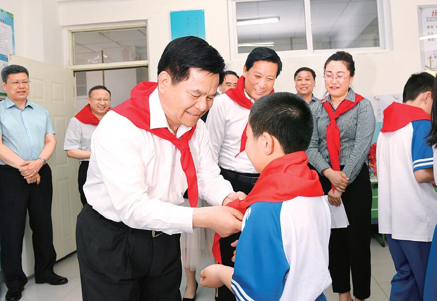 在“六一”国际儿童节即将到来之际,自治区党委书记、人大常委会主任李纪恒来到赤峰市敖汉旗新惠第六小学,和孩子们共同庆祝“六一”国际儿童节,向他们和全区各族少年儿童送上美好祝福。