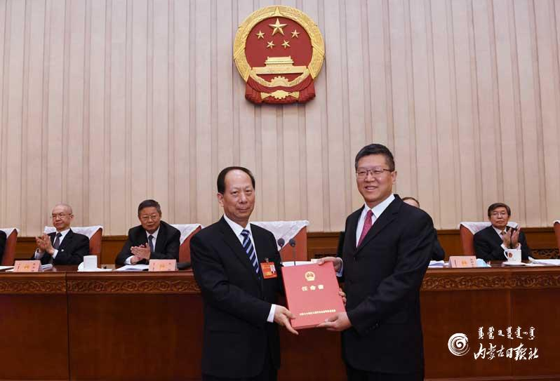 4月1日上午,自治区党委书记、人大常委会主任石泰峰出席自治区十三届人大常委会第十九次会议第二次全体会议,并为新任命的自治区副主席衡晓帆颁发任命书。